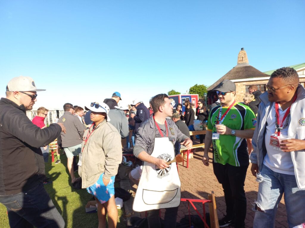 After a brief 30-minute break and a quick swim, we headed to the hardcore hut to set up for the Area Food Table Competition. Last year, Round Table Gauteng had performed poorly, so this year we were determined to make a comeback. We were organised and efficient, and all the gents and their partners from RTGA pitched in to do their part. We blew the judges away with our delicate starters, brutal mains, and soft, fluffy dessert.